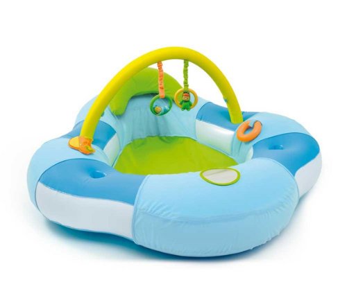 Baby Cocoon della gammaCotoons di SMOBY uno spazio gioco gonfiabile. Con questo spazio gioco gonfiabile ed evolutivo a forma di fiore, il bambino, disteso, potr giocare a far girare con i piedini il rullo pieno di palline. Poi, quando sar cresciuto e sapr stare seduto, potr giocare con le manine ad afferrare i 2 sonagli Cotoons sospesi all'archetto. Per stimolare la curiosit del neonato, questo spazio propone altre attivit ripartite sui lati (uno specchio, una macchinina e un anello). Da un punto di vista pratico, la fodera in tessuto amovibile e lavabile. Un gioco prima infanzia colorato, con cui il bambino potr passare dei piacevoli momenti di gioco !