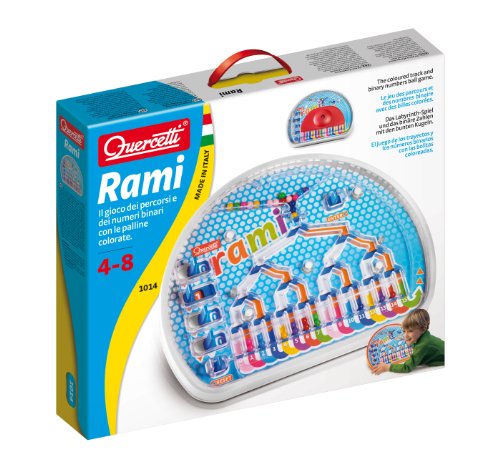 Un gioco che insegna ai bambini il sistema binario (il linguaggio dei computer) e quindi a contare utilizzando solo i simboli 0" e "1". La posizione di ciascuna delle 4 levette (ogni levetta ha 2 posizioni, lo zero e l'uno) abilita un percorso che porta la pallina verso uno dei 16 rami. Se le quattro levette sono nella posizione 0000 la pallina va nel ramo 0; se le quattro levette sono nella posizione 0001 la pallina va in nel ramo 1 e cos via fino alla combinazione delle levette nella posizione 1111 che corrisponde al ramo 15. Et: a partire da 4 anni e fino ad 8 Produttore: QUERCETTI"