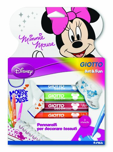 Giotto Minnie Mouse astuccio 8 pennarelli per tessuto + 3 stencils [Giocattolo]