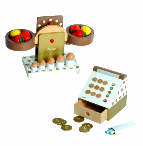 Questo set Janod alimentari Chic include una scala e di un registratore di cassa per giocare il mercato!