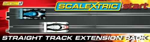 This pack contains two straight pieces of track Extension pack for the new Scalextric Basic 'Start' range. This range enables you to have a much more flexible scalextric set and less cost than the regular sets. Scalextric 'Start' range is a selection of track and cars that are more basic than regular Scalextric, the pieces are redesigned so that the enable more flexibility in track design.