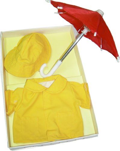 Kit che consente di simulare un momento di gioco della bambola sotto la pioggia. Il kit comprende ombrello da pioggia, cappello ed impermeabile.
