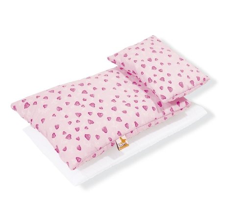Pinolino 28350-7 - Lenzuola per letto bambole, 3 pezzi, colore: Rosa a cuori