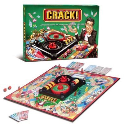 L'unico gioco al mondo dove chi perde una fortuna vince! Con una bellissima plancia di gioco e tanti divertentissimi "incidenti di percorso". Ma attenzione: diventare poveri non sempre cos facile! Crack e' un gioco da tavolo per 2-5 giocatori.Dimensione: 40,00 x 26,00 x 4 scatolaNote: + 8 anni