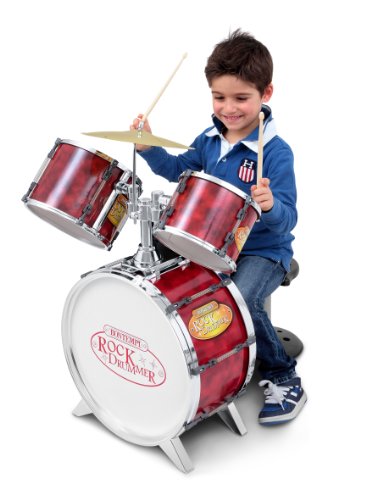 - HIGH SCHOOL MUSICAL ROCK DRUMMER, Batteria con diametro 430 mm. Con pedale 2 piccoli tamburi 240 e 210 mm. Piatto 270 mm. 2 bacchette Suoni veri Con sgabello regolabile in altezza Dimensioni: 630 x 400 x 800 mm.