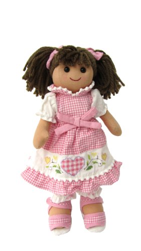 Bambola con fantastico vestito vichy bianco e rosa. Ha un originale ricamo sulla base del vestito. Come scarpe indossa dei sandalini in tinta con il suo vestitino. E' interamente spogliabile consentendo cos alla bambina di vestire con un abito diverso la sua bambola.