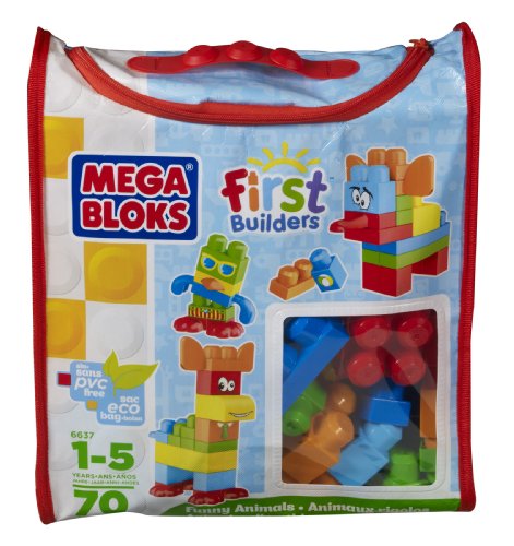 Mega Bloks 6637 Sacca Ecologica Maxi Mattoncini, Animali Pazzi, 70 Pezzi, Colori Classici