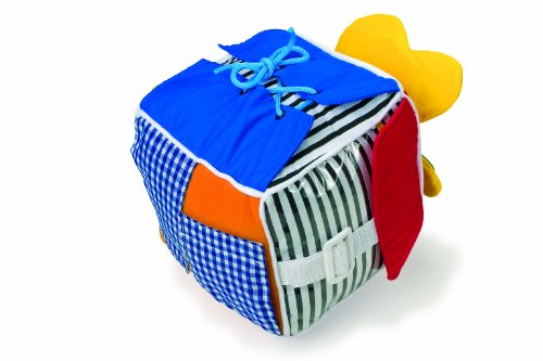 Un cubo bella morbida, colorata con diverse chiusure per il risveglio del bambino.
