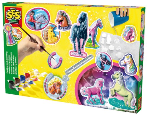 - Il set per gli amanti dei cavalli. Creare vari disegni sui cavalli grazie ai modelli contenuti. Dopo che il gesso si asciugato i modellini si possono colorare con i colori forniti e riempire di brillantini. Per creazioni personalizzate
