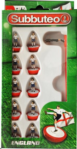 The classic game of football is back! Fans of all ages will love the new re-energised Subbuteo range with greatly improved detail. This team box contains 10 English players wearing the signature white jersey and blue trousers. Pick your team, decide your game plan and victory will be at your fingertips! Can you flick it? Yes you can!